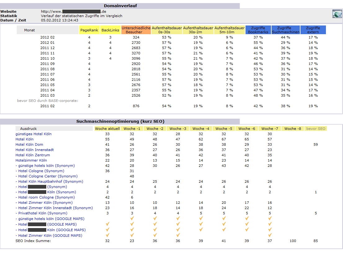 The world's only system with its own advanced SEO statistics for the following data: search engine optimization - your keyphrases positions at GOOGLE's PageRank, backlinks and summary of all major Statstikwerte over the last 12 months.