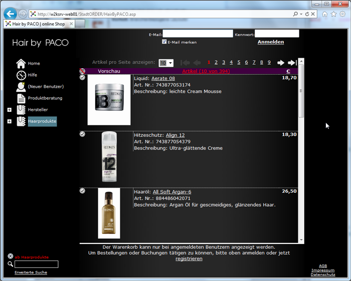 Integrated online shop for their own products. A unique look can be implemented. Means of payment such as PayPal are available.